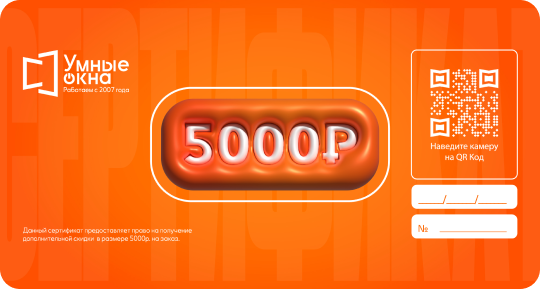 Дополнительная скидка в размере 5000 рублей на заказ окон. Можно получить в качестве «секретного приза» от замерщика.